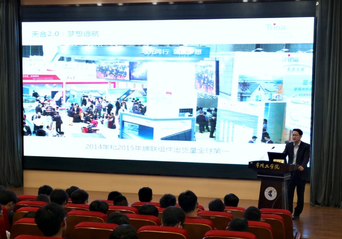 4月17日下午,由常州市委宣传部牵头组织的“改革先锋进校园活动”走进我校。常州天合光能股份有限公司人力资源总监廖文卓为我校百余名师生代表讲述“改革先锋”高纪凡的先进事迹。