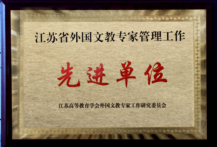 4月17日,在江苏省高等教育学会外国文教专家工作研究会年会上,我校被评为2018年度“江苏省外国文教专家管理工作先进单位”。同时,副校长汪群获江苏省外国文教专家管理工作特殊贡献奖,国际交流合作处王雅晴被授予“先进个人”称号。