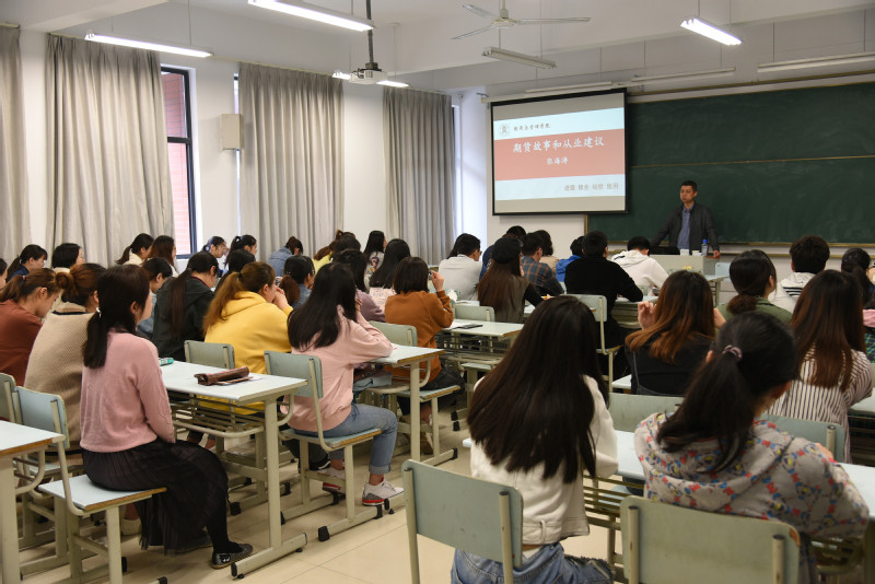 最惜杜鹃花烂漫,春风吹尽不同攀。当天,不同专业以事迹报告会、对话会的形式,邀请优秀校友从不同角度为在校生解读“成长的密码”。91届校友张海涛为经济系师生讲述了期货故事和从业建议。财务管理专业93届校友、常州天马集团有限公司总经理邵俊,结合自己一波三折的财务人生、财务行业的变化与发展前景,与学弟学妹们展开对话。鼓励在座的学子始终保持努力学习、积极向上的态度,培养终生阅读的良好习惯,成为有思想、有职业规划的新时代大学生。工业工程专业2011届优秀校友、苏州奥林特投资有限公司总经理李伟,就“商科大学生创业”的议题与管理工程系学生侃侃而谈。他结合自身经历,告诫大家“凡事预则立,不预则废”。
