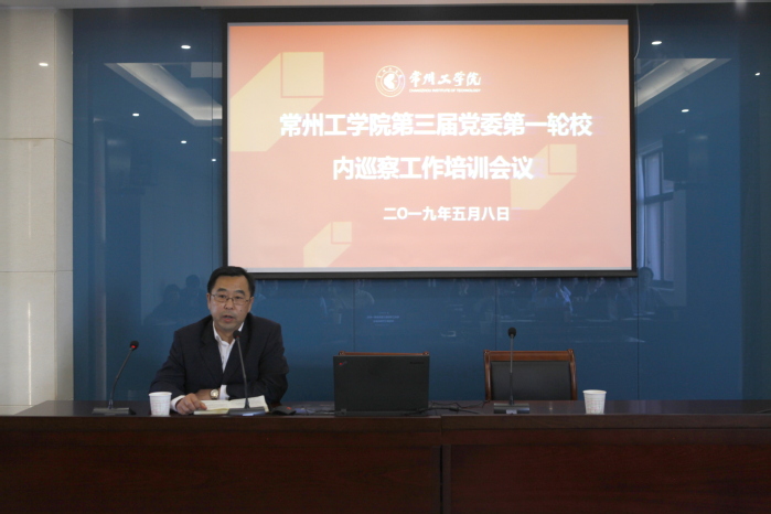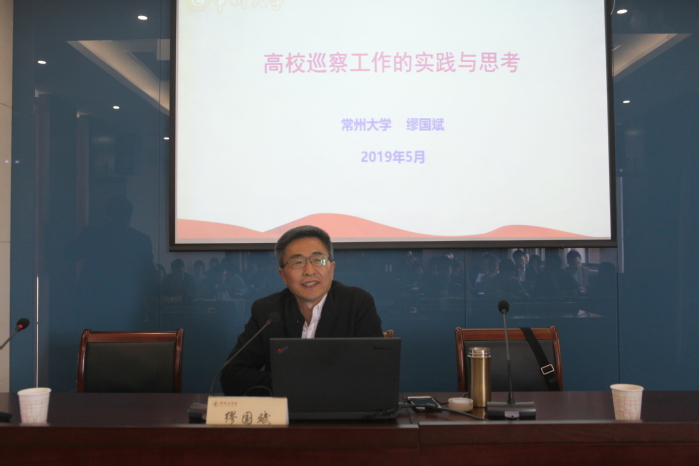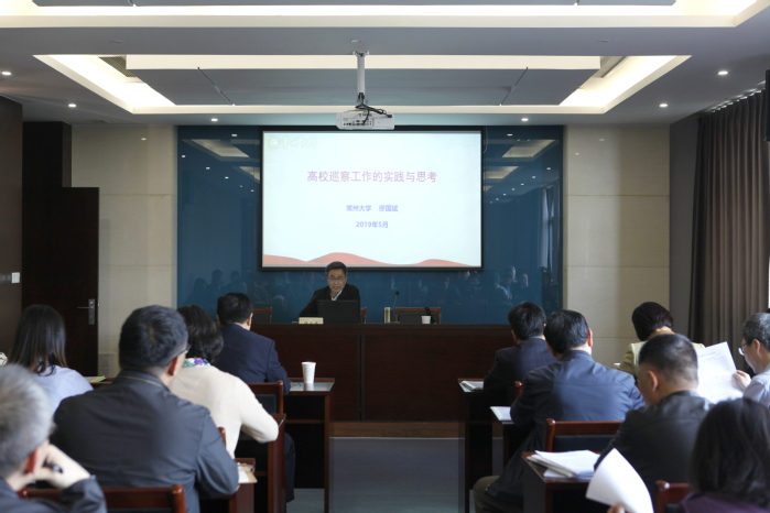 5月8日下午,我校召开第三届党委第一轮校内巡察工作培训会,邀请常州市委第五巡察组组长徐元金、常州大学纪委副书记缪国斌作专题报告。
