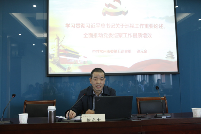 徐元金从对习近平总书记关于巡视工作重要论述精神的认识、常州市委巡察“五步工作法”介绍、对巡察工作的实践与探索等三个方面进行了详细讲解。缪国斌围绕常州大学校内巡察工作概况、巡察阶段工作和重点关注的问题、巡察工作取得的成效、巡察工作的几点思考等四个方面为我校开展巡察工作作了宝贵的经验介绍。