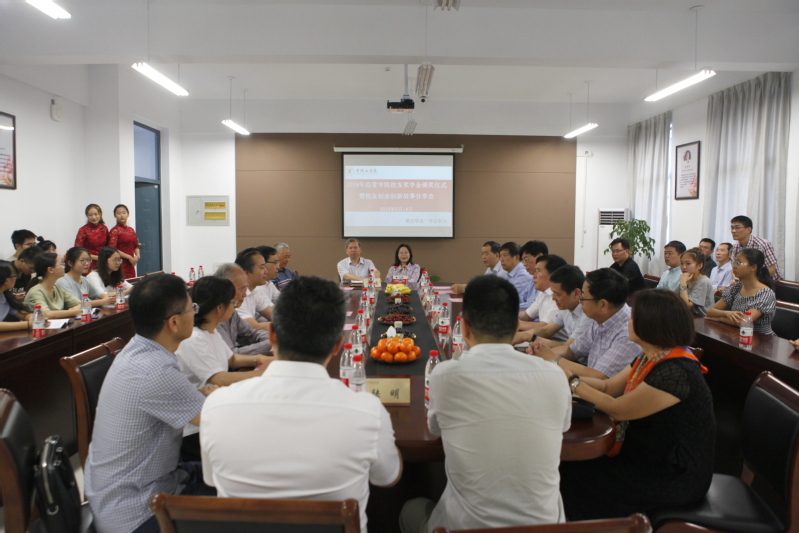 六月人归花满地,校友师生喜相聚。6月14日上午,在即将送别2019届学子前夕,经济与管理学院校友奖学金捐赠主体——84级管理干部班的部分校友和经管学院部分老领导老教师代表再聚母校,参加校友奖学金颁奖仪式暨创业创新故事分享会。