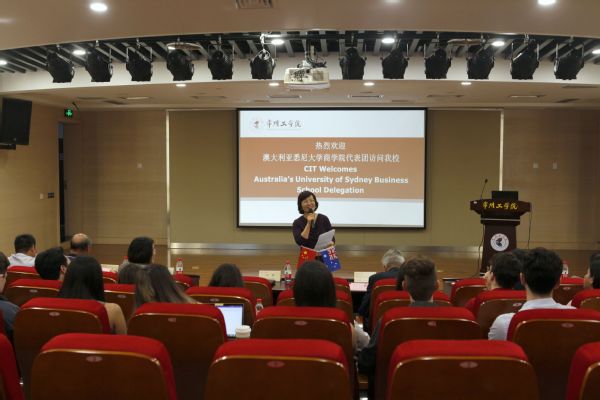 交流会由副校长汪群主持。会上,亨得利斯科·汉斯介绍了悉尼大学商学院的人才培养、优势学科专业、教学设施与资质、毕业生就业等情况。我校国际交流合作处、经济与管理学院、网络与教育技术中心有关人员介绍了我校的办学定位、学科专业、国际交流合作以及留学生教育,以及常州经济发展历程与未来方向、学校数字化管理等方面的情况。外国语学院外教教研室副主任威廉˙史蒂文通过形象生动的文字和图片向来访师生展现了外国人眼中的常州。