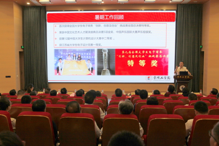 会上,校长汤正华充分肯定了暑期学校各条线的工作成效,分析了“智能+”时代学校面临的新形势和新机遇。他围绕人才培养,学科建设、科学研究和产教融合,队伍建设,综合管理和保障,党建和宣传思想文化等五个方面,全面部署了新学期全校工作。