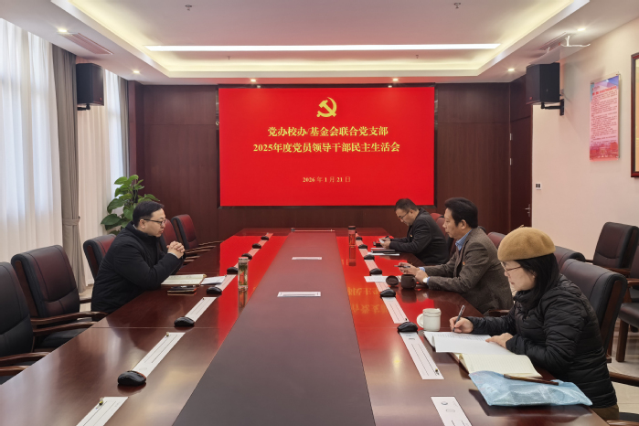 1月21日,党办校办/基金会联合党支部召开2025年度党员领导干部民主生活会。机关党委委员、办公室党支部书记胡戬主持会议,党支部党员领导干部全员参会。