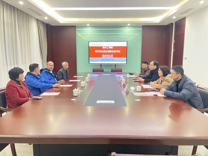 3月17日,我校与常州市武进区威雅实验学校签署全面合作协议。必益教育集团副总裁史玥,威雅实验学校外方校长David Aitchison、中方校长房宏鸿、党支部书记阚庆豪,校党委副书记王传金及国际交流合作处、国际交流学院、外国语学院负责人参加活动。
